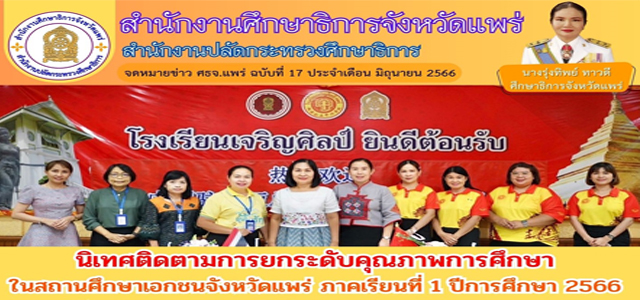 มิถุนายน 7, 2566 No comments นิเทศติดตามการยกระดับคุณภาพการศึกษา ของสถานศึกษาเอกชนในจังหวัดแพร่ ภาคเรียนที่ 1 ปีการศึกษา 2566 ณ โรงเรียนเจริญศิลป์ และโรงเรียนอนุบาลเพ็ญรัต วันที่ 7 มิถุนายน 25