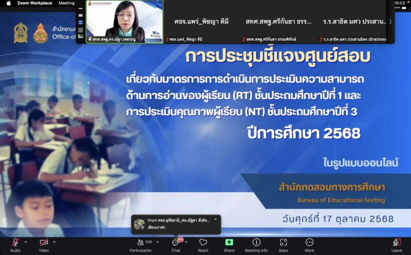 ตุลาคม 24, 2568 No comments ศธจ.แพร่ เข้าร่วมการประชุมชี้แจงศูนย์สอบในการดำเนินการประเมิน RT ชั้น ป.1 และการประเมิน NT ชั้น ป.3 ปีการศึกษา 2568 วันที่ 17 ตุลาคม 256