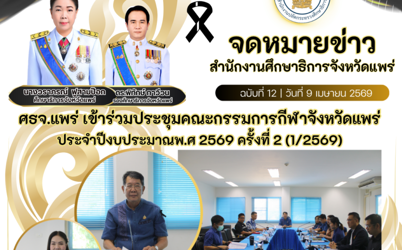 เมษายน 22, 2569 No comments ศธจ.แพร่ เข้าร่วมประชุมคณะกรรมการกีฬาจังหวัดแพร่ ประจำปีงบประมาณพ.ศ 2569 ครั้งที่ 2 (1/2569) วันที่ 9 เมษายน 2569