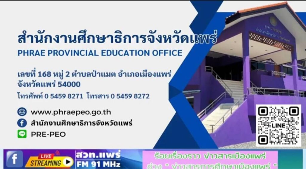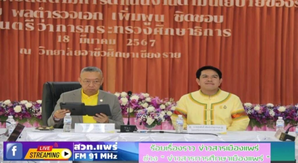 รายการร้อยเรื่องราวข่าวสารเมืองแพร่ ช่วงข่าวสารการศึกษาเมืองแพร่ ออกอากาศวันที่ 19 มีนาคม 2567 โดยนายสุทิน จันทรวรเชตต์ ศึกษาธิการจังหวัดแพร่ นางกนกวรรณ มะลิ นักวิชาการศึกษา (รมว.กระทรวงศึกษาธิการ ลงพื้นที่ติดตามนโยบายรัฐบาล,ขยายผลวิทยากรประวัติศาสตร์ชาติไทย,คำสั่ง สพฐ.ให้ข้าราชการปฏิบัติหน้าที่,ทุน ม.ท.ศ.,หน่วยงานทางการศึกษาเป็นเจ้าภาพสภากาแฟจังหวัดแพร่)