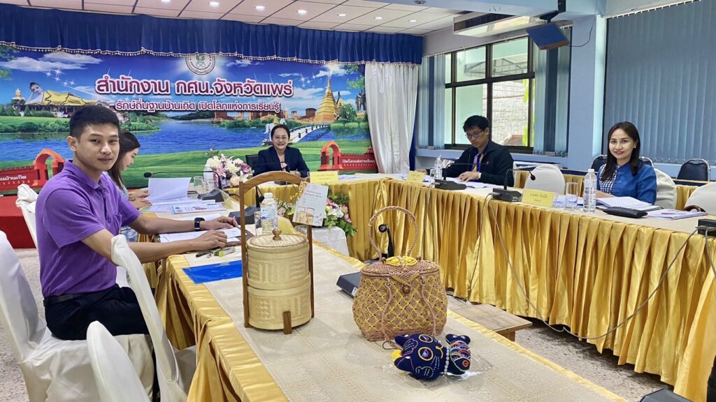 วันที่ 20 มีนาคม 2567 นายสุทิน จันทรวรเชตต์ ศึกษาธิการจังหวัดแพร่ มอบหมายให้ นางลภัสกร ถิรชานิธิศ ศึกษานิเทศก์ชำนาญการ ร่วมเป็นคณะกรรมการคัดเลือกผลิตภัณฑ์ชุมชน ระดับจังหวัด พ.ศ. 2567 ณ ห้องประชุม สำนักงานส่งเสริมการเรียนรู้จังหวัดแพร่ อำเภอเมืองแพร่ จังหวัดแพร่