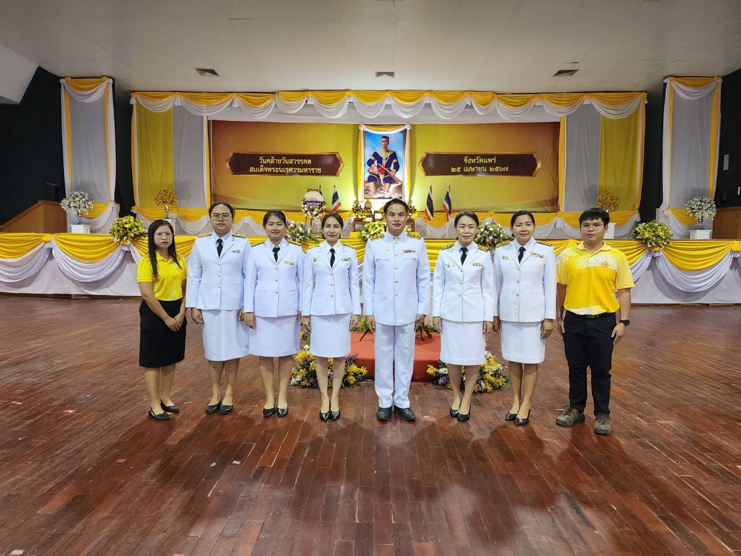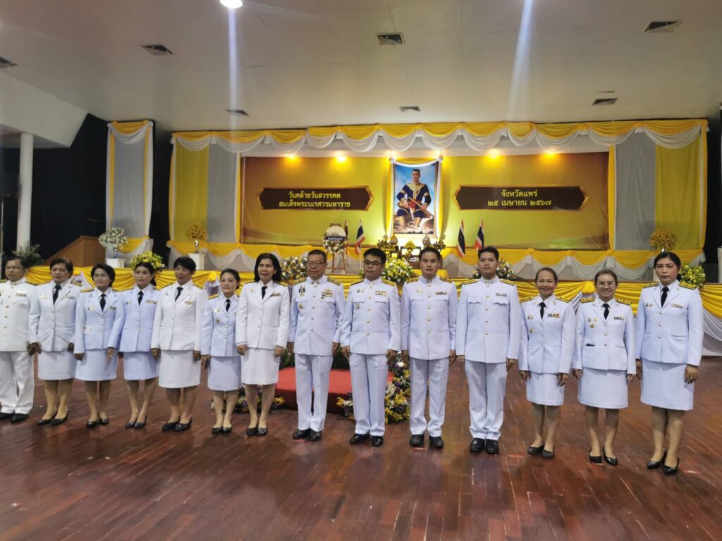 วันที่ 25 เมษายน 2567 เวลา 07.00 น. นายสุทิน จันทรวรเชตต์ ศึกษาธิการจังหวัดแพร่ มอบหมายให้นายสุวิณ เทพสาธร รองศึกษาธิการจังหวัดแพร่ และบุคลากรสำนักงานศึกษาธิการจังหวัดแพร่ เข้าร่วมงานรัฐพิธีเนื่องในวันคล้ายวันสวรรคตสมเด็จพระนเรศวรมหาราช โดยมีนายชัยสิทธิ์ ชัยสัมฤทธิ์ผล รองผู้ว่าราชการจังหวัดแพร่ เป็นประธานในพิธี ณ ศูนย์ประชุมและแสดงศิลปวัฒนธรมล้านนาตะวันออกและกลุ่มประเทศ GMS ตำบลทุ่งโฮ้ง อำเภอเมืองแพร่ จังหวัดแพร่