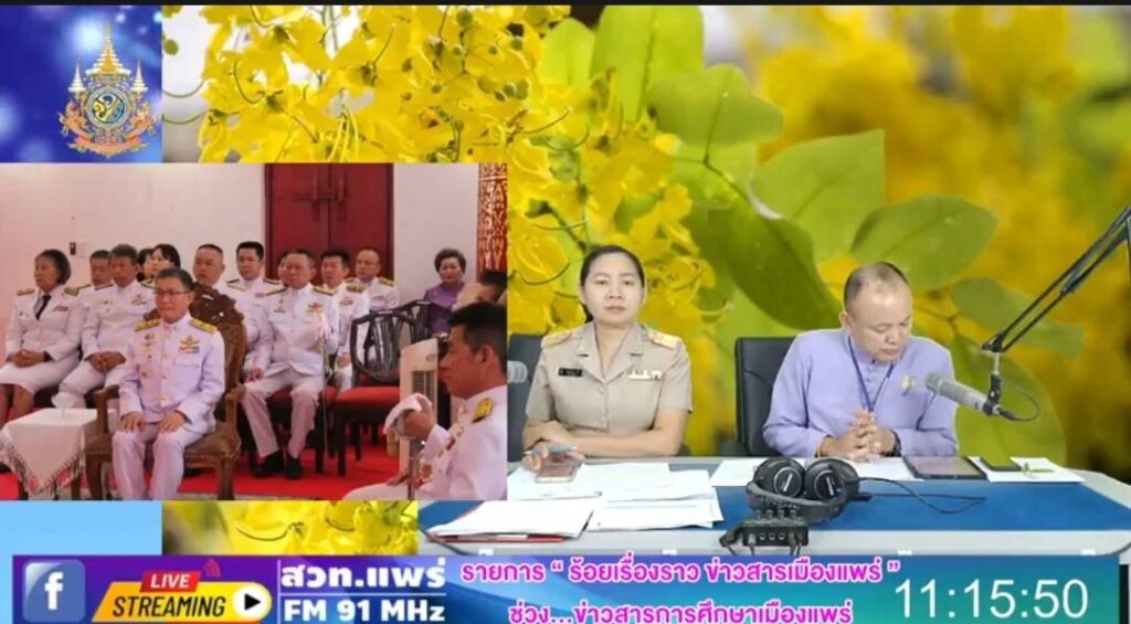 รายการร้อยเรื่องราวข่าวสารเมืองแพร่ ช่วงข่าวสารการศึกษาเมืองแพร่ ออกอากาศวันที่ 2 เมษายน 2567 โดยนายสุทิน จันทรวรเชตต์ ศึกษาธิการจังหวัดแพร่ นางกนกวรรณ มะลิ นักวิชาการศึกษา (วันพระราชสมภพ สมเด็จพระกนิษฐาธิราชฯ ,วันข้าราชการพลเรือน,แชมป์ฟุตบอลกีฬาเยาวชนแห่งชาติ,วันสถาปนากระทรวงศึกษาธิการ,โครงการต่อเนื่องเชื่อมโยง,โครงการIFTE,ผล O-NET 2566)