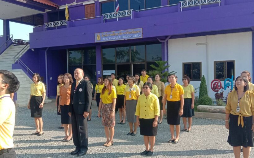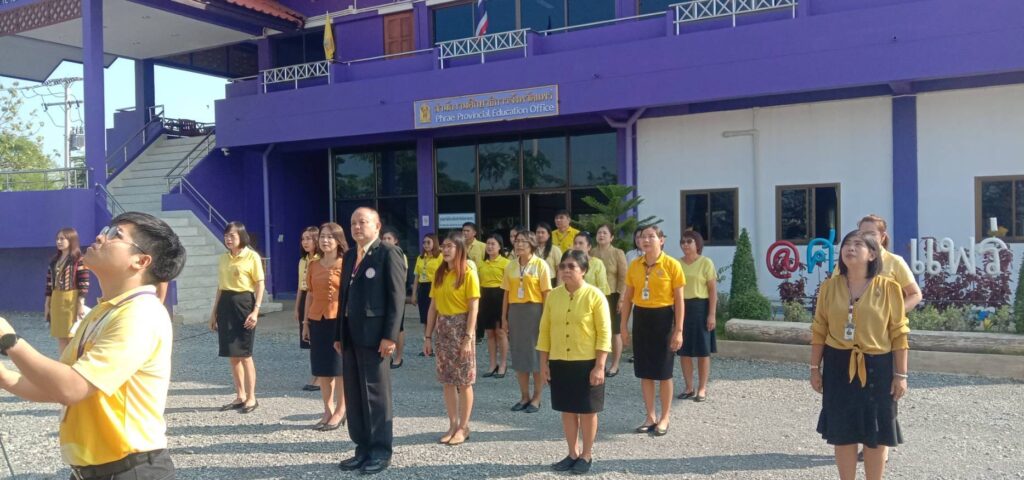 วันที่ 13 พฤษภาคม 2567 สำนักงานศึกษาธิการจังหวัดแพร่ นำโดยนายสุทิน จันทรวรเชตต์ ศึกษาธิการจังหวัดแพร่ และนายสุวิณ เทพสาธร รองศึกษาธิการจังหวัดแพร่ จัดกิจกรรมเข้าแถวเคารพธงชาติ สวดมนต์ไหว้พระ กล่าวคำปฏิญาณตน ถวายสัตย์ปฏิญาณเพื่อเป็นข้าราชการที่ดี และกล่าวประกาศเจตนารมณ์ในการต่อต้านการทุจริต เพื่อเสริมสร้างคุณธรรมจริยธรรม และแสดงความจงรักภักดีต่อชาติ ศาสนา พระมหากษัตริย์ ณ สำนักงานศึกษาธิการจังหวัดแพร่ ตำบลป่าแมต อำเภอเมืองแพร่ จังหวัดแพร่