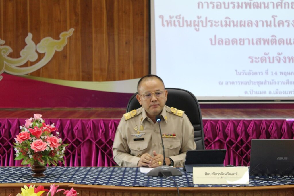 ศธจ.แพร่ จัดการอบรมพัฒนาศักยภาพบุคลากรให้เป็นผู้ประเมินผลงานโครงการสถานศึกษาสีขาว ปลอดยาเสพติดและอบายมุข