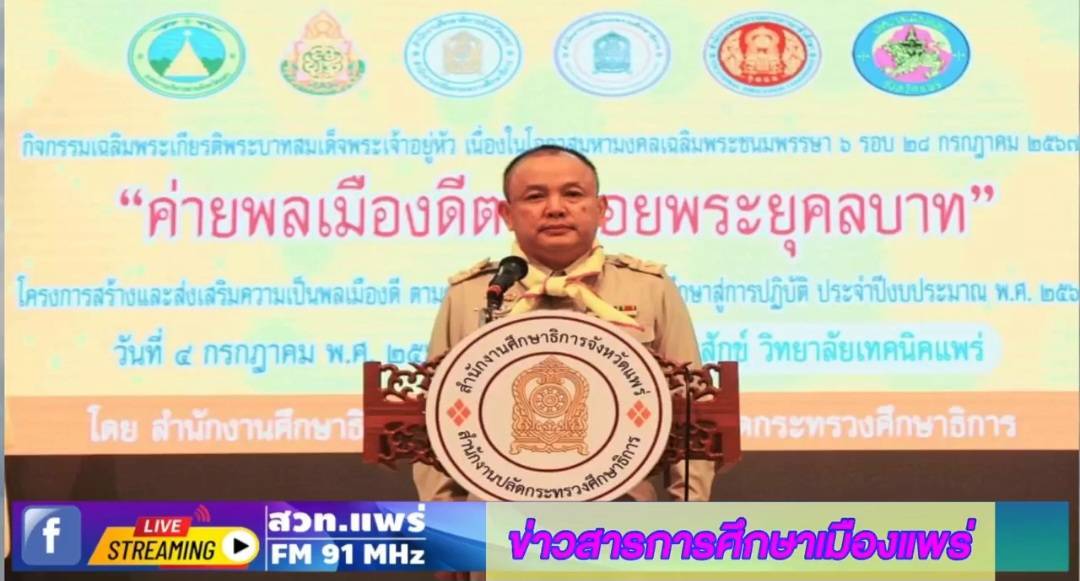 รายการร้อยเรื่องราวข่าวสารเมืองแพร่ ช่วงข่าวสารการศึกษาเมืองแพร่ ออกอากาศวันที่ 9 กรกฎาคม 2567 โดย นางกนกวรรณ มะลิ นักวิชาการศึกษา ชำนาญการ (พิธีจัดทำน้ำพระพุทธมนต์ศักดิ์สิทธิ์ เนื่องในโอกาสมหามงคลเฉลิมพระชนมพรรษา 6 รอบ 27 กรกฏาคม 2567,มอบทุนการศึกษาเหล่ากาชาดจังหวัดแพร่,ตรวจเยี่ยมและมอบทุนนักเรียนทุน ม.ท.ศ. ทุนมูลนิธิร่งมจิตต์,ค่ายพลเมืองดีตามรอยพระยุคลบาท,หลักสูตรต้านทุจริต,นิเทศติดตามโรงเรียนในโครงการกองทุนการศึกษา,ทุนเสมาพัฒนาชีวิต)