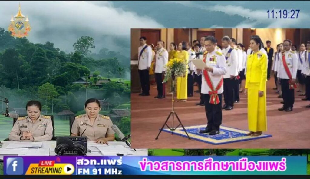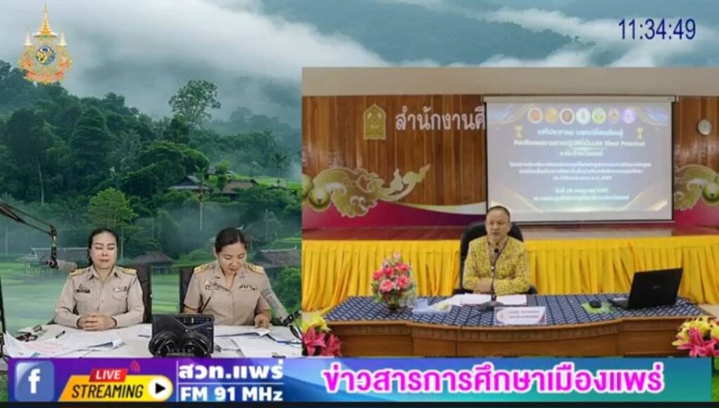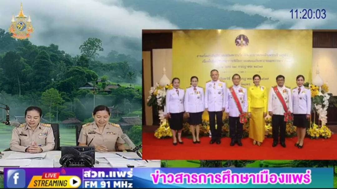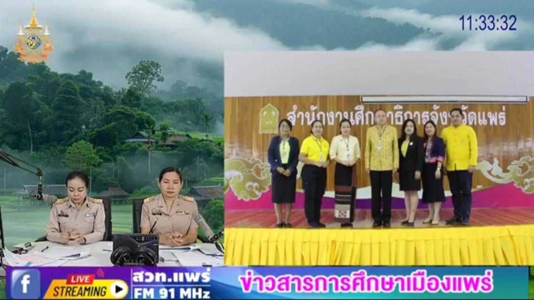 รายการร้อยเรื่องราวข่าวสารเมืองแพร่ ช่วงข่าวสารการศึกษาเมืองแพร่ ออกอากาศวันที่ 30 กรกฎาคม 2567 โดยนางสาวบุษบา สุกแก้ว ผู้อำนวยการกลุ่มนิเทศ ติดตาม และประเมินผล และนางกนกวรรณ มะลิ นักวิชาการศึกษา ชำนาญการ (ร่วมพิธีเฉลิมพระเกียรติ เนื่องในโอกาสมหามงคลเฉลิมพระชนมพรรษา 6 รอบ 27 กรกฏาคม 2567,1 อำเภอ สถานศึกษาคุณภาพ,หลักสูตรต่อเนื่องเชื่อมโยง,Best ปฐมวัย,องค์กรคุณธรรม,เปิดอบรม โรงเรียนราชประชานุเคราะห์ 25 จังหวัดแพร่)