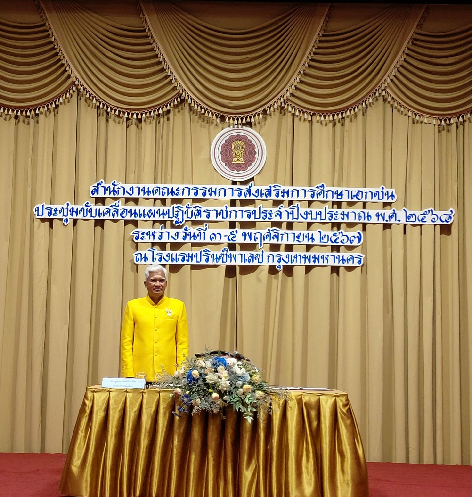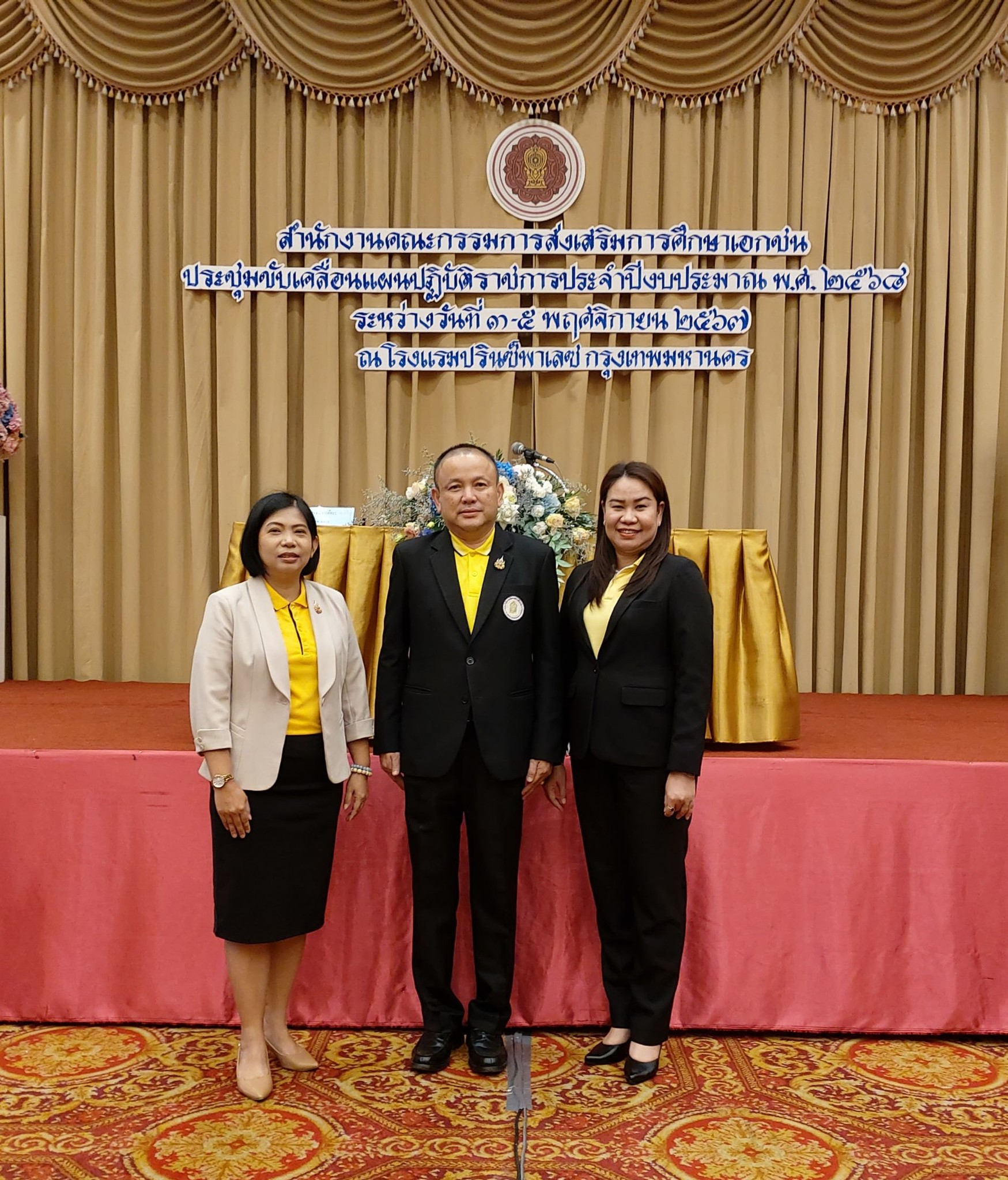 นายสุทิน จันทรวรเชตต์ ศึกษาธิการจังหวัดแพร่ พร้อมด้วยนางสาวญาณิชศา ยวงแก้ว ผู้อำนวยการกลุ่มส่งเสริมการศึกษาเอกชน และนางสาวพักตร์ธีรา ทะนันชัย นักวิชาการศึกษาชำนาญการ เข้าร่วมประชุมขับเคลื่อนแผนปฏิบัติราชการประจำปีงบประมาณ พ.ศ. 2568 ของสำนักงานคณะกรรมการส่งเสริมการศึกษาเอกชน ระหว่างวันที่ 3-5 พฤศจิกายน 2567 เพื่อสร้างความรู้ ความเข้าใจแนวทางการดำเนินงานตามกรอบทิศทางการพัฒนาครูและการจัดการเรียนรู้ที่ตอบสนองความต้องการประเทศให้กับบุคลากรในส่วนกลางและส่วนภูมิภาค โดยมีนายสุเทพ แก่งสันเทียะ ปลัดกระทรวงศึกษาธิการ เป็นประธานการประชุมฯ ณ โรงแรมปริ๊นซ์พาเลซ มหานาค เขตป้อมปราบศัตรูพ่าย กรุงเทพมหานคร