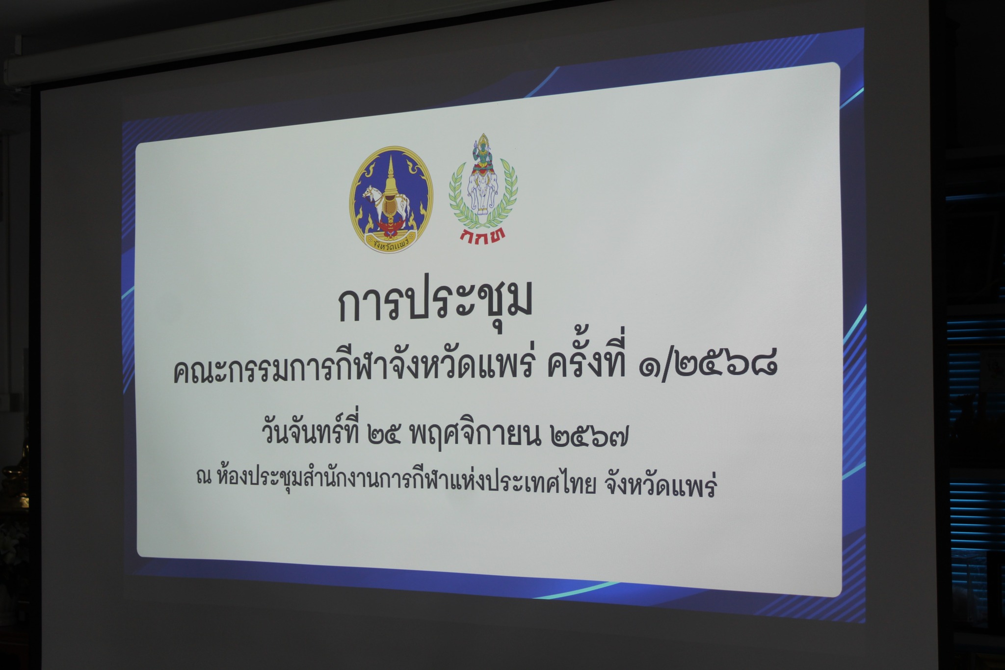 วันที่ 25 พฤศจิกายน 2567 เวลา 13.30 น. นายสุทิน จันทรวรเชตต์ ศึกษาธิการจังหวัดแพร่ เข้าร่วมประชุมคณะกรรมการกีฬาจังหวัดแพร่ ประจำปีงบประมาณ พ.ศ. 2568 ครั้งที่ 1/2568 เพื่อเป็นการรายงานผลการดำเนินงาน ประจำปีงบประมาณ พ.ศ. 2567 และรายงานงบรายรับ – รายจ่าย ประจำปีงบประมาณ พ.ศ. 2567 รวมทั้งการพิจารณาแผนงานกีฬาจังหวัดแพร่ ประจำปีงบประมาณ พ.ศ. 2568 โดยมีนายคุณากร คชหิรัญ รองผู้ว่าราชการจังหวัดแพร่ รักษาราชการแทนผู้ว่าราชการจังหวัดแพร่ เป็นประธานการประชุมฯ ณ ห้องประชุมสำนักงานการกีฬาแห่งประเทศไทยจังหวัดแพร่ อำเภอเมืองแพร่ จังหวัดแพร่