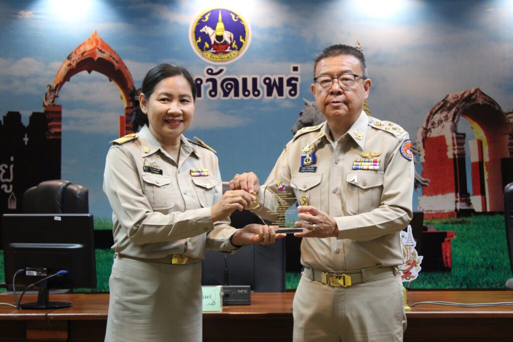 นายชัยสิทธิ์ ชัยสัมฤทธิ์ผล รองผู้ว่าราชการจังหวัดแพร่ รักษาราชการแทนผู้ว่าราชการจังหวัดแพร่ มอบโล่เกียรติคุณและเข็มกลัดเชิดชูเกียรติ “หม่อมงามจิตต์ บุรฉัตร บุคคลสำคัญของโลก” รางวัลสร้างเสริมคนดีมีคุณธรรม ประจำปี 2567 จังหวัดแพร่ จำนวน 2 ราย ได้แก่ นางกนกวรรณ มะลิ นักวิชาการศึกษาชำนาญการ สังกัดสำนักงานศึกษาธิการจังหวัดแพร่ และนางสาวรัฐติกร จิรัฐตการ ครูโรงเรียนสาธิตเทศบาลบ้านเชตวัน สังกัดเทศบาลเมืองแพร่ ในการประชุมคณะกรมการจังหวัดแพร่ฯ ครั้งที่ 11/2567 วันพุธที่ 27 พฤศจิกายน 2567 ณ ห้องประชุมจดหมายเหตุ ศาลากลางจังหวัดแพร่ โดยมีนายสุทิน จันทรวรเชตต์ ศึกษาธิการจังหวัดแพร่ ร่วมแสดงความยินดีในโอกาสนี้ด้วย