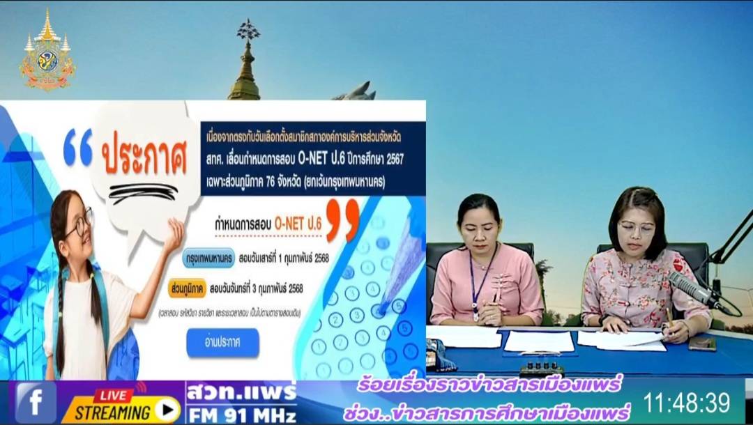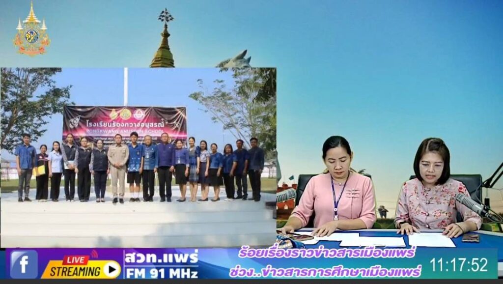 รายการร้อยเรื่องราวข่าวสารเมืองแพร่ ช่วงข่าวสารการศึกษาเมืองแพร่ ออกอากาศวันที่ 17 ธันวาคม 2567 โดยนางกนกวรรณ มะลิ และนางสรัญญา แสงกล้า นักวิชาการศึกษาชำนาญการ (รางวัลพระราชทาน ปีการศึกษา 2566,ตรวจเยี่ยมนักเรียนทุน ม.ท.ศ.,คณะกรรมาธิการการศึกษาฯ วุฒิสภา ศึกษาดูงาน โรงเรียนคุณภาพมาตรฐานสูง,อบรมผู้กำกับลูกเสือ,ประกวดสปอตวันครู 2568,เลื่อนสอบ O-Net 2567,อบรมพัฒนาผู้บริหารการศึกษา สังกัดกระทรวงศึกษาธิการ)