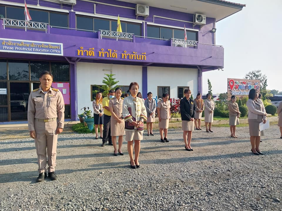 วันที่ 6 มกราคม 2568 สำนักงานศึกษาธิการจังหวัดแพร่ จัดกิจกรรมเข้าแถวเคารพธงชาติ สวดมนต์ไหว้พระ กล่าวคำปฏิญาณตน ถวายสัตย์ปฏิญาณเพื่อเป็นข้าราชการที่ดี และกล่าวประกาศเจตนารมณ์ในการต่อต้านการทุจริต โดยมีนายสุทิน จันทรวรเชตต์ ศึกษาธิการจังหวัดแพร่ นายสุวิณ เทพสาธร รองศึกษาธิการจังหวัดแพร่ พร้อมด้วยคณะข้าราชการ บุคลากร เข้าร่วมกิจกรรมฯ เพื่อเสริมสร้างคุณธรรมจริยธรรม และแสดงความจงรักภักดีต่อชาติ ศาสนา พระมหากษัตริย์ ณ สำนักงานศึกษาธิการจังหวัดแพร่ ตำบลป่าแมต อำเภอเมืองแพร่ จังหวัดแพร่