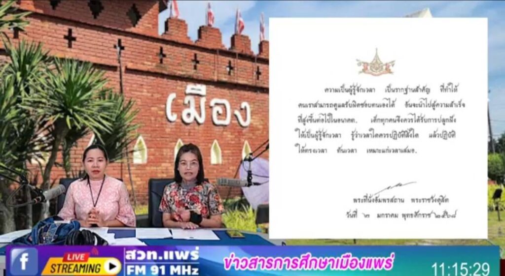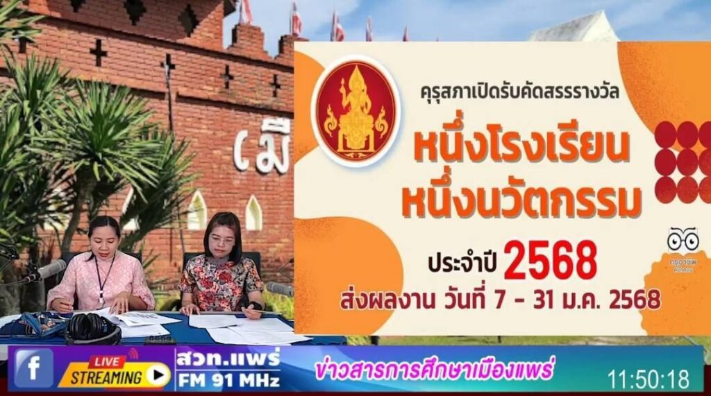 รายการร้อยเรื่องราวข่าวสารเมืองแพร่ ช่วงข่าวสารการศึกษาเมืองแพร่ ออกอากาศวันที่ 7 มกราคม 2568 โดยนางกนกวรรณ มะลิ และนางสรัญญา แสงกล้า นักวิชาการศึกษาชำนาญการ (วันเด็กแห่งชาติ ปี 2568,นักเรียนทุนพระราชทาน ม.ท.ศ.,การแต่งกายวันจันทร์,คุรุสภาคัดเลือกหนึ่งโรงเรียนหนึ่งนวัตกรรม,สรรหากรรมการผู้ทรงคุณวุฒิจุดเน้นกระทรวงศึกษาธิการ,ศูนย์ความปลอดภัยบนท้องถนน)
