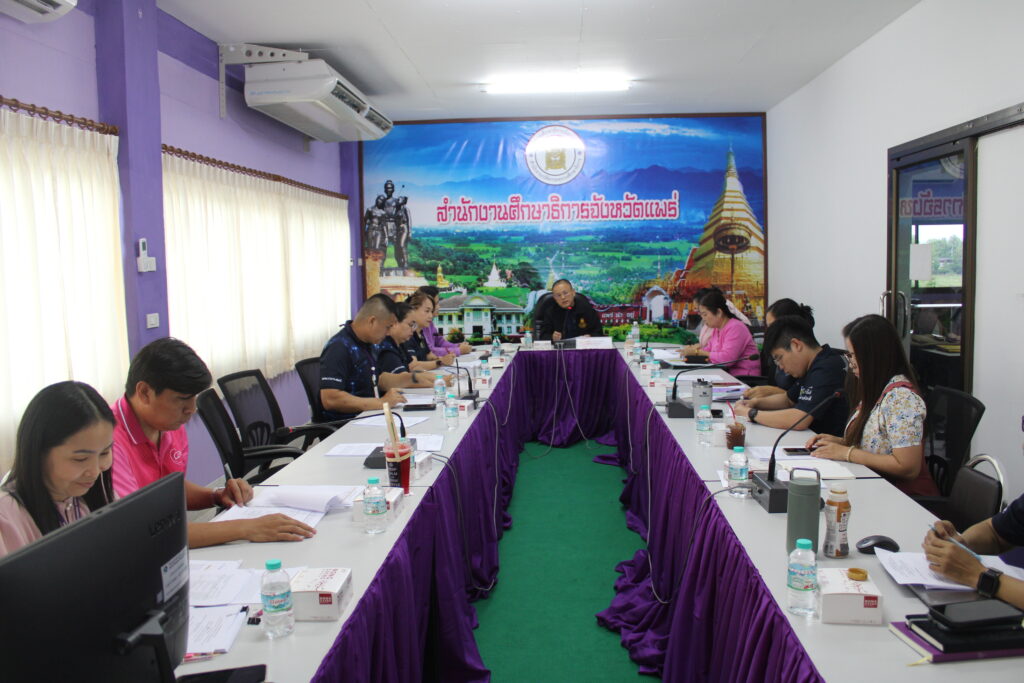 วันที่ 6 พฤษภาคม 2568 เวลา 13.30 น. นายสุทิน จันทรวรเชตต์ ศึกษาธิการจังหวัดแพร่ เป็นประธานการประชุมคณะทำงานประเมินคุณธรรมและความโปร่งใสในการดำเนินงานของหน่วยงานสังกัดสำนักงานปลัดกระทรวงศึกษาธิการ (Integrity and Transparency Assessment : ITA) ประจำปีงบประมาณ พ.ศ. 2568 ครั้งที่ 1/2568 โดยมีนายสุวิณ เทพสาธร รองศึกษาธิการจังหวัดแพร่ พร้อมด้วยผู้อำนวยการกลุ่ม และบุคลากรสำนักงานศึกษาธิการจังหวัดแพร่ เข้าร่วมประชุมฯ ณ ห้องประชุมเกี้ยวฝั้น สำนักงานศึกษาธิการจังหวัดแพร่ ตำบลป่าแมต อำเภอเมืองแพร่ จังหวัดแพร่