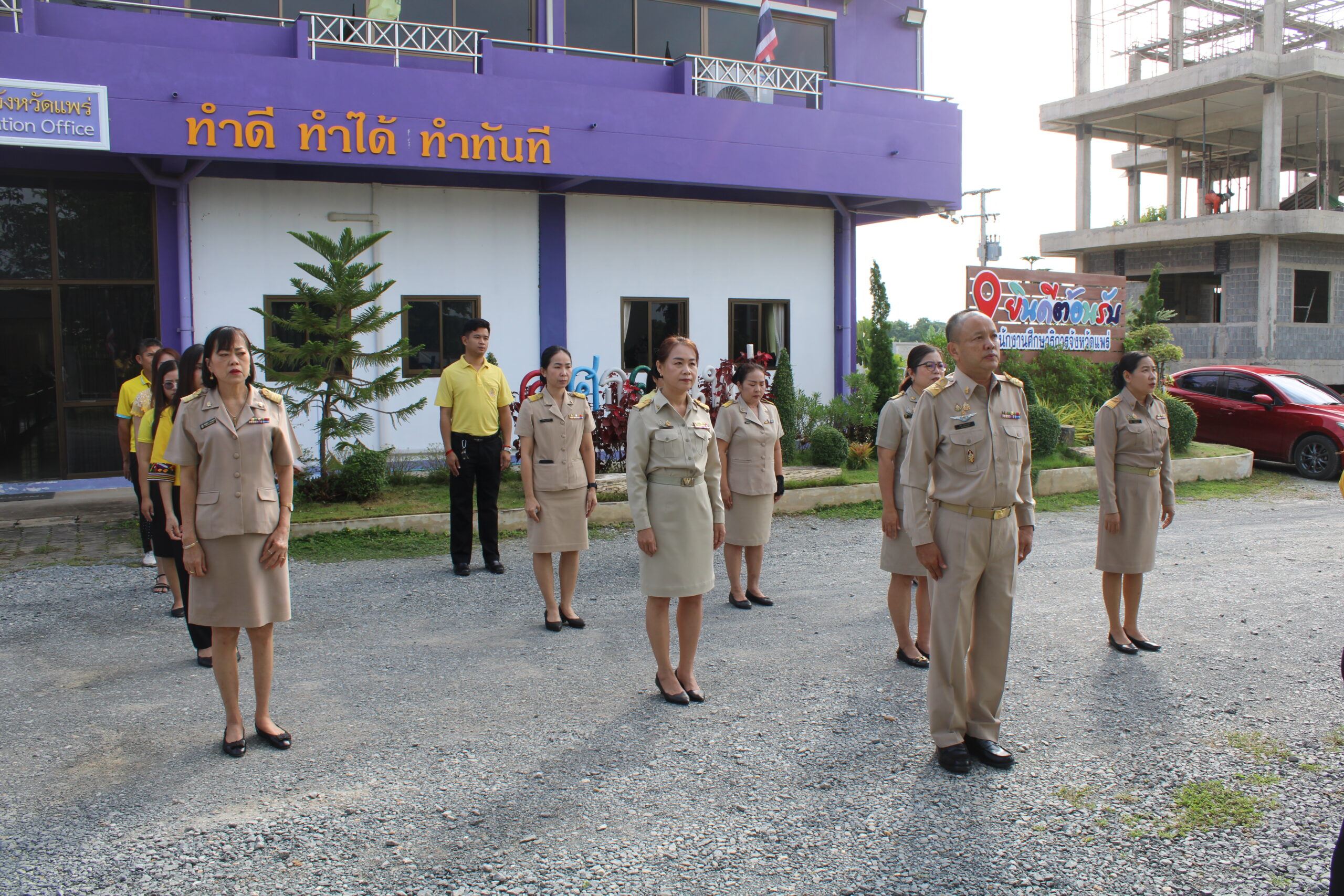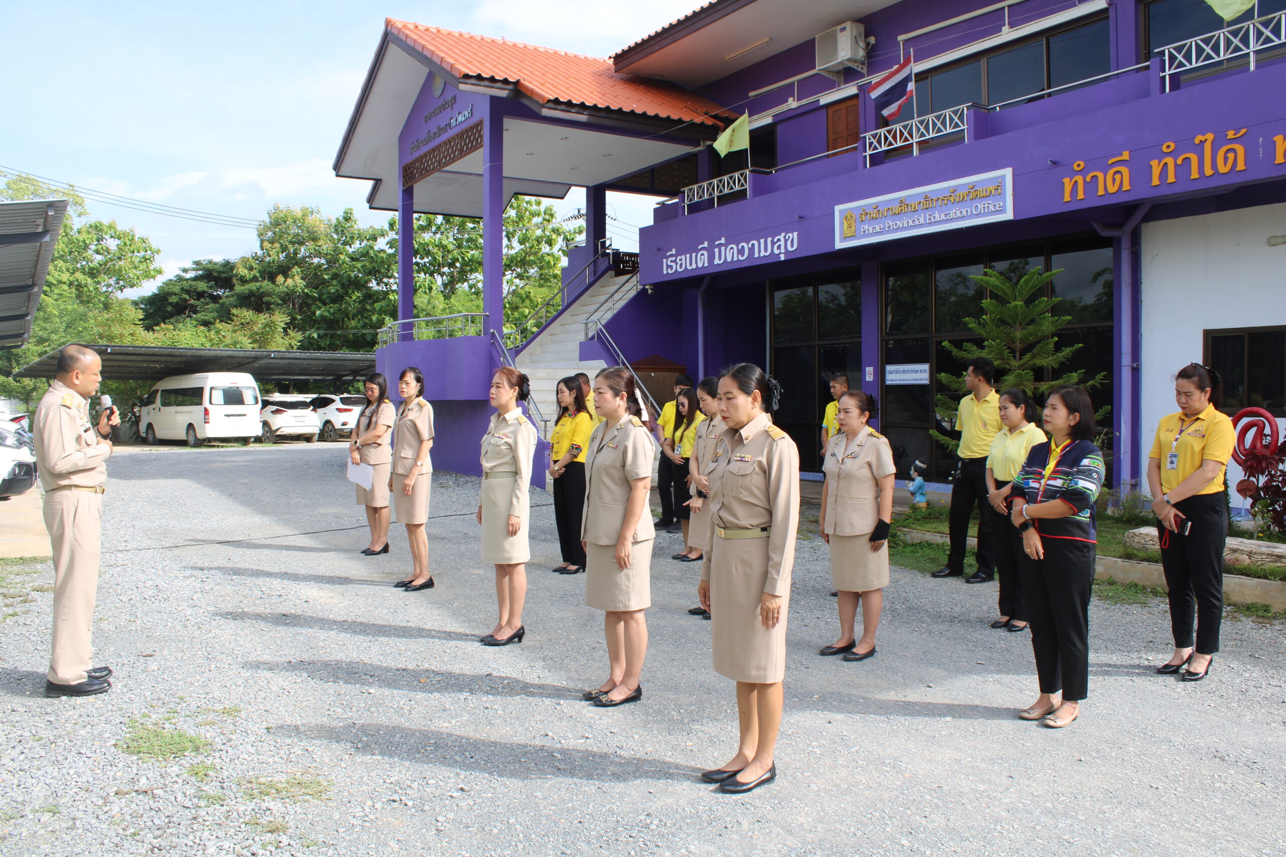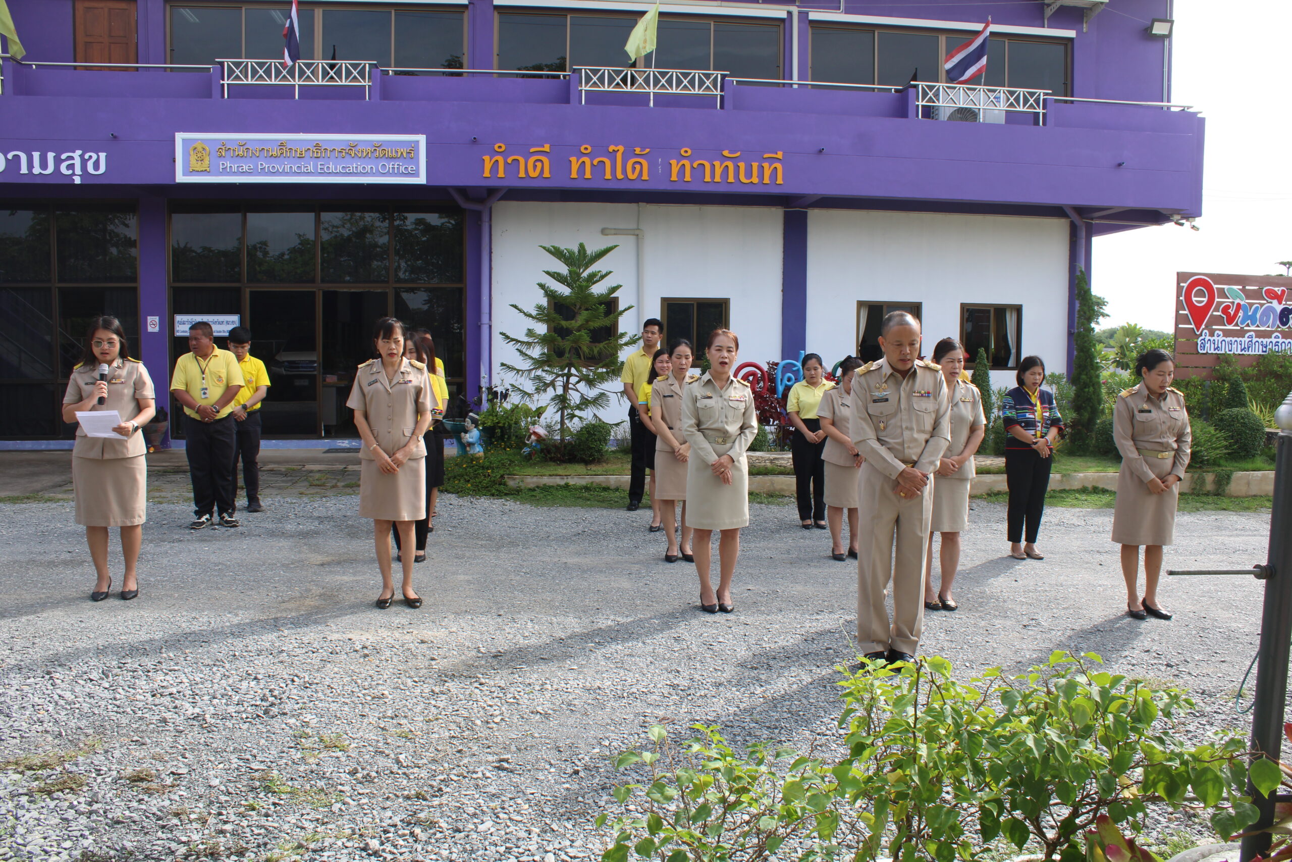 วันที่ 30 มิถุนายน 2568 สำนักงานศึกษาธิการจังหวัดแพร่ จัดกิจกรรมเข้าแถวเคารพธงชาติ สวดมนต์ไหว้พระ กล่าวคำปฏิญาณตน ถวายสัตย์ปฏิญาณเพื่อเป็นข้าราชการที่ดี และกล่าวประกาศเจตนารมณ์ในการต่อต้านการทุจริต โดยมีนายสุทิน จันทรวรเชตต์ ศึกษาธิการจังหวัดแพร่ พร้อมด้วยคณะข้าราชการ บุคลากร เข้าร่วมกิจกรรมฯ เพื่อเสริมสร้างคุณธรรมจริยธรรม และแสดงความจงรักภักดีต่อชาติ ศาสนา พระมหากษัตริย์ ณ สำนักงานศึกษาธิการจังหวัดแพร่ ตำบลป่าแมต อำเภอเมืองแพร่ จังหวัดแพร่