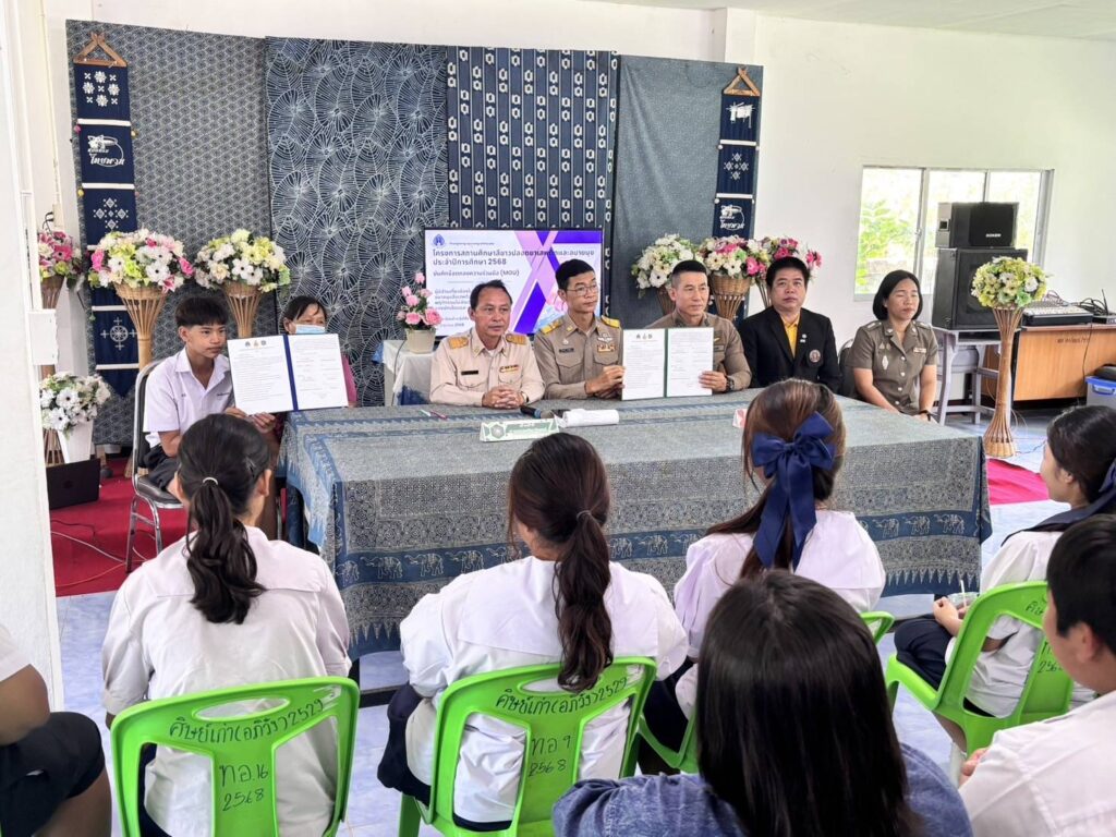 วันที่ 30 มิถุนายน 2568 เวลา 09.30 น. นายสุทิน จันทรวรเชตต์ หัวหน้าศูนย์เสมารักษ์สำนักงานศึกษาธิการจังหวัดแพร่ มอบหมายให้นายธานี แก้วแกมเกตุ เจ้าหน้าที่ส่งเสริมความประพฤตินักเรียนและนักศึกษา ศูนย์เสมารักษ์ สำนักงานศึกษาธิการจังหวัดแพร่ ร่วมลงนามบันทึกข้อตกลงความร่วมมือ (MOU) เรื่อง การป้องกันและแก้ไขปัญหายาเสพติดในสถานศึกษา โครงการสถานศึกษาสีขาวปลอดยาเสพติดและอบายมุข ประจำปีการศึกษา 2568 ณ ห้องประชุมโรงเรียนบ้านทุ่งโฮ้ง (อภิวังวิทยาลัย) อำเภอเมืองแพร่ จังหวัดแพร่