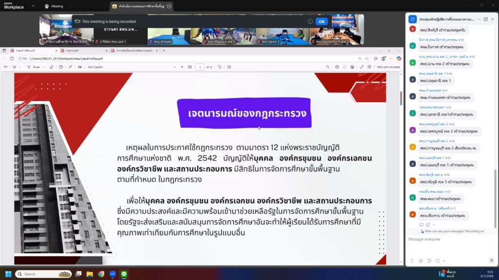 วันที่ 9 กรกฎาคม 2568 เวลา 09.00 น. นายสุทิน จันทรวรเชตต์ ศึกษาธิการจังหวัดแพร่ เข้าร่วมการประชุมชี้แจงแนวทางการจัดการศึกษาขั้นพื้นฐาน ตามมาตรา 12 แห่งพระราชบัญญัติการศึกษาแห่งชาติ พ.ศ. 2542 ผ่านระบบ Zoom Meeting ณ ห้องประชุมเกี้ยวฝั้น สำนักงานศึกษาธิการจังหวัดแพร่ ตำบลป่าแมต อำเภอเมืองแพร่ จังหวัดแพร่