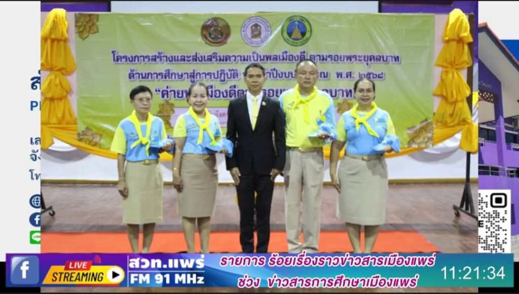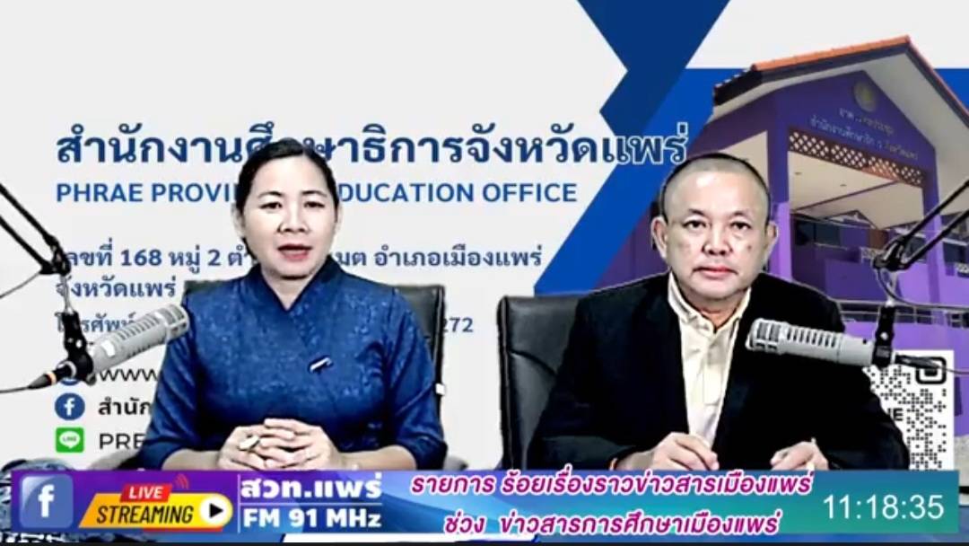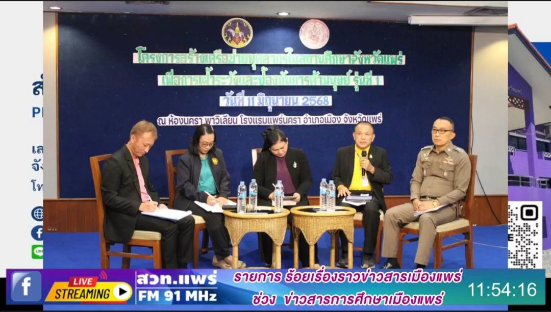 รายการร้อยเรื่องราวข่าวสารเมืองแพร่ ช่วงข่าวสารการศึกษาเมืองแพร่ ออกอากาศวันที่ 17 มิถุนายน 2568 โดยนายสุทิน จันทรวรเชตต์ ศึกษาธิการจังหวัดแพร่ และนางกนกวรรณ มะลิ นักวิชาการศึกษาชำนาญการ (รางวัลเสมาพิทักษ์ระดับประเทศ,ค่ายพลเมืองดี,สานสัมพันธ์นักเรียนทุน ม.ท.ศ.,เครือข่าย พ.ส.น. เสวนาปัญหาการค้ามนุษย์,ยุวสิงห์มหาดไทย,MOU โรงเรียนคุณธรรม สพฐ.)