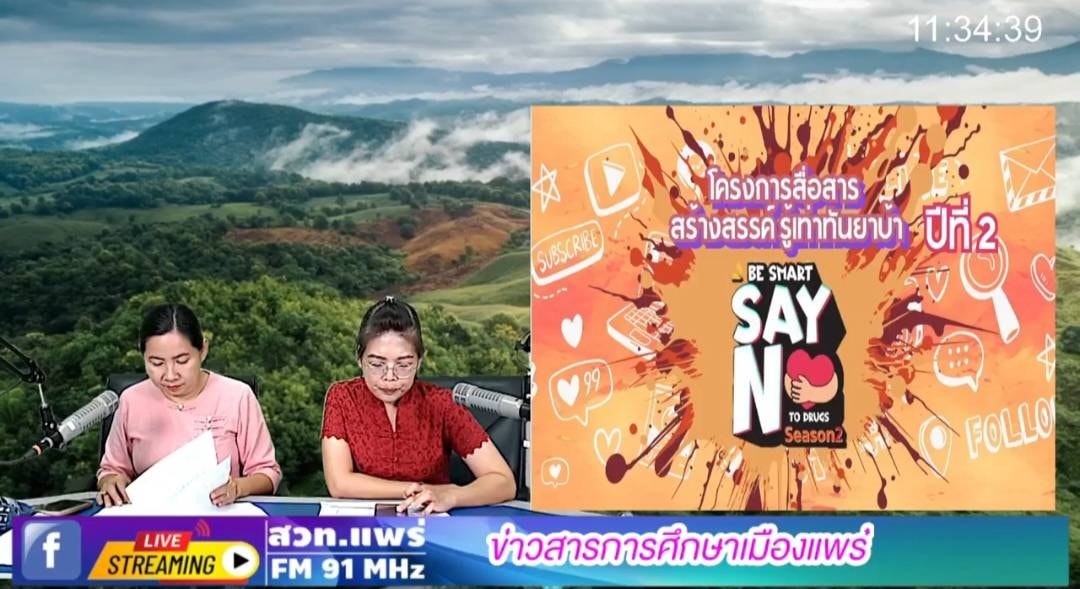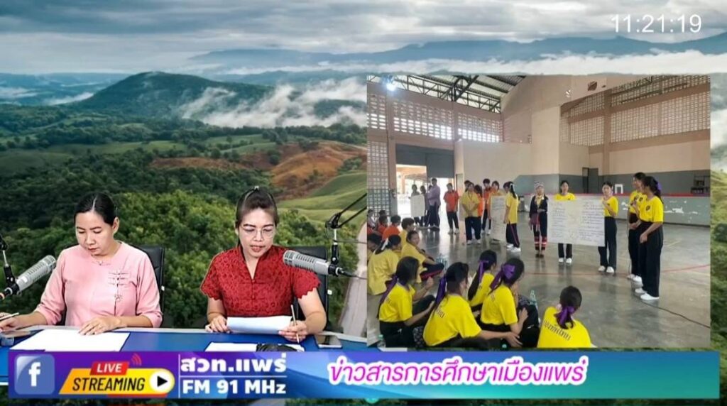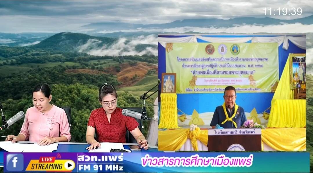 รายการร้อยเรื่องราวข่าวสารเมืองแพร่ ช่วงข่าวสารการศึกษาเมืองแพร่ ออกอากาศวันที่ 24 มิถุนายน 2568 โดยนางกนกวรรณ มะลิ และนางสรัญญา แสงกล้า นักวิชาการศึกษาชำนาญการ (ค่ายพลเมืองดี,ธนาคารหน่วยกิต,วันต่อต้านยาเสพติดโลก,ประกวดสื่อสร้างสรรค์ต้านภัยยาเสพติด,วันคล้ายวันสถาปนาคณะลูกเสือแห่งชาติ)
