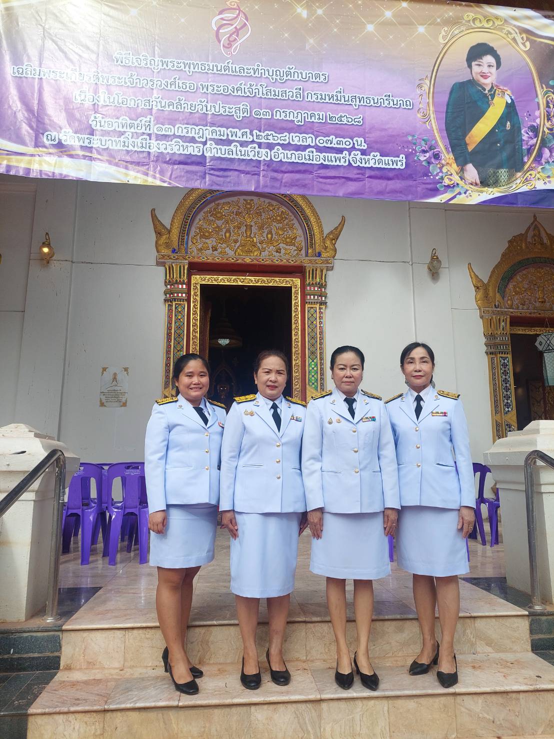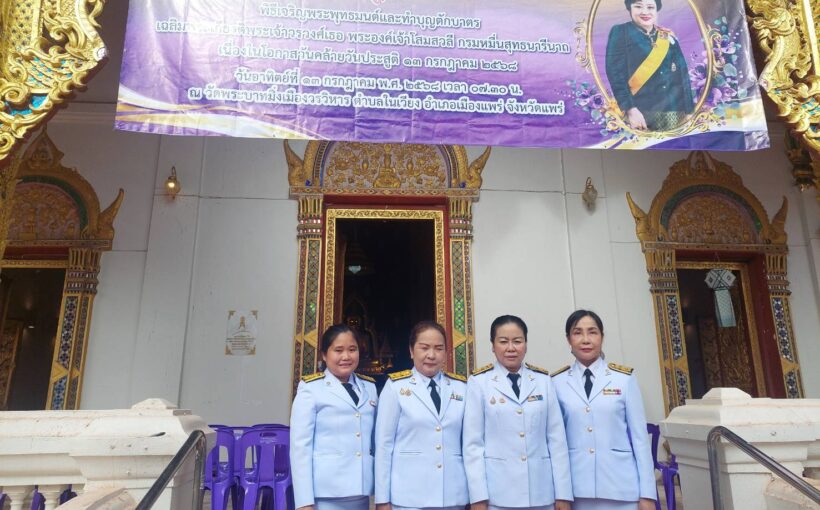 วันที่ 13 กรกฎาคม 2568 เวลา 07.30 น. นายสุทิน จันทรวรเชตต์ ศึกษาธิการจังหวัดแพร่ มอบหมายให้นางสาวบุษบา สุกแก้ว ผู้อำนวยการกลุ่มนิเทศ ติดตาม และประเมินผล พร้อมด้วยบุคลากรสำนักงานศึกษาธิการจังหวัดแพร่ เข้าร่วมพิธีเจริญพระพุทธมนต์และทำบุญตักบาตร เฉลิมพระเกียรติ พระเจ้าวรวงศ์เธอ พระองค์เจ้าโสมสวลี กรมหมื่นสุทธนารีนาถ เนื่องโอกาสวันคล้ายวันประสูติ 13 กรกฎาคม 2568 โดยมีนายชัยสิทธิ์ ชัยสัมฤทธิ์ผล รองผู้ว่าราชการจังหวัดแพร่ เป็นประธานในพิธีฯ ณ วัดพระบาทมิ่งเมืองวรวิหาร ตำบลในเวียง อำเภอเมืองแพร่ จังหวัดแพร่