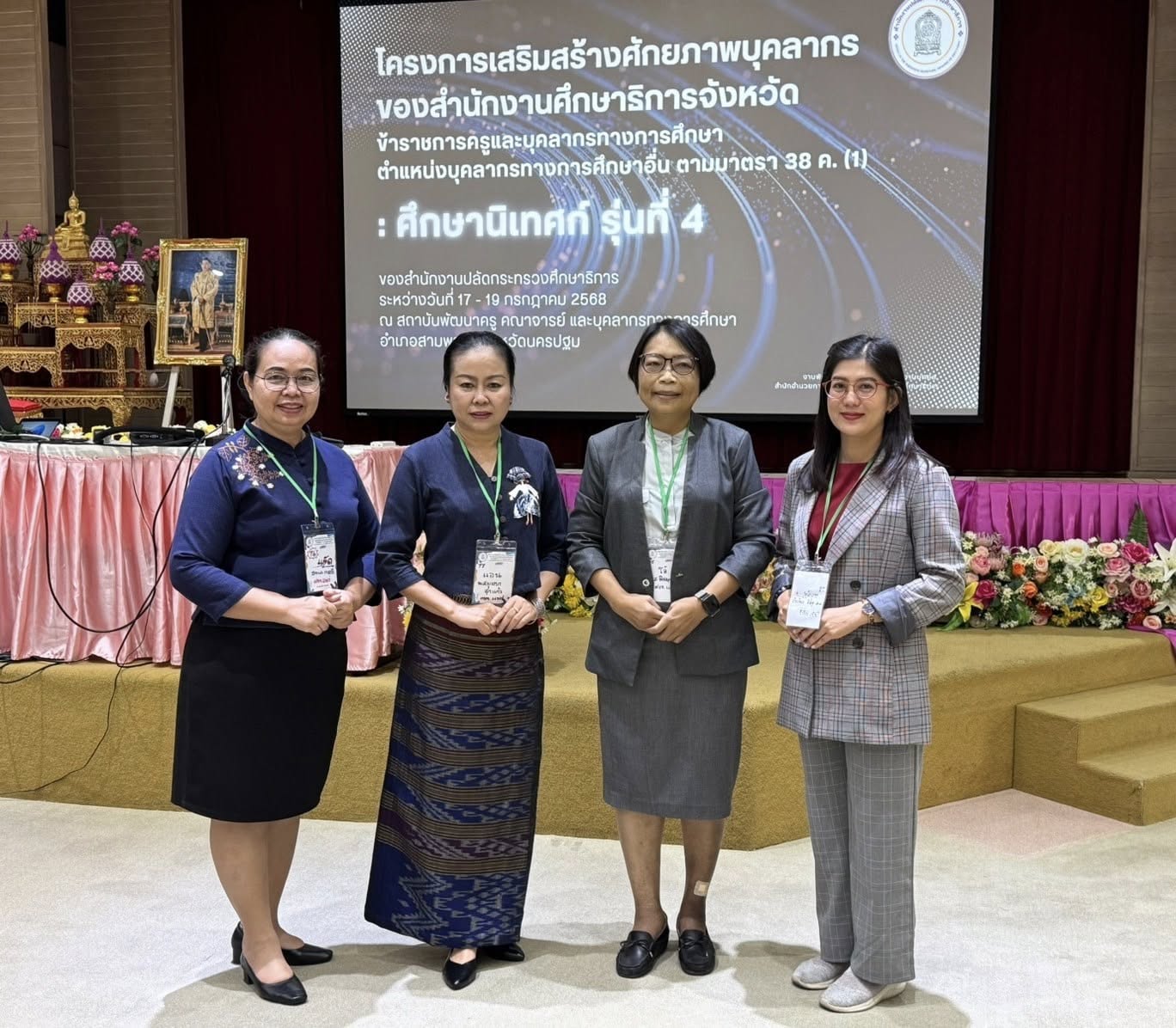 นายสุทิน จันทรวรเชตต์ ศึกษาธิการจังหวัดแพร่ มอบหมายให้นางสาวบุษบา สุกแก้ว ผู้อำนวยการกลุ่มนิเทศ ติดตาม และประเมินผล พร้อมด้วยนางรจนา กาแก้ว นางสาวพิชญา ดีมี และนางสาวนุชรี วงค์แก้ว ศึกษานิเทศก์ สำนักงานศึกษาธิการจังหวัดแพร่ เข้ารับการอบรมโครงการเสริมสร้างศักยภาพบุคลากรของสำนักงานศึกษาธิการจังหวัด ข้าราชการครูและบุคลากรทางการศึกษาอื่นตามมาตรา 38 ค.(1) ตำแหน่งศึกษานิเทศก์ รุ่นที่ 4 ระหว่างวันที่ 17-19 กรกฏาคม 2568 ณ สถาบันพัฒนาครู คณาจารย์ และบุคลากรทางการศึกษา อำเภอสามพราน จังหวัดนครปฐม