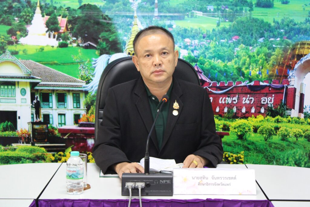 วันที่ 6 สิงหาคม 2568 เวลา 09.00 น. นายสุทิน จันทรวรเชตต์ ศึกษาธิการจังหวัดแพร่ เป็นประธานการประชุมผู้บริหาร ผู้อำนวยการกลุ่ม สำนักงานศึกษาธิการจังหวัดแพร่ ครั้งที่ 4/2568 โดยมีผู้อำนวยการกลุ่มสำนักงานศึกษาธิการจังหวัดแพร่ เข้าร่วมประชุมฯ ณ ห้องประชุมเกี้ยวฝั้น สำนักงานศึกษาธิการจังหวัดแพร่ ตำบลป่าแมต อำเภอเมืองแพร่ จังหวัดแพร่