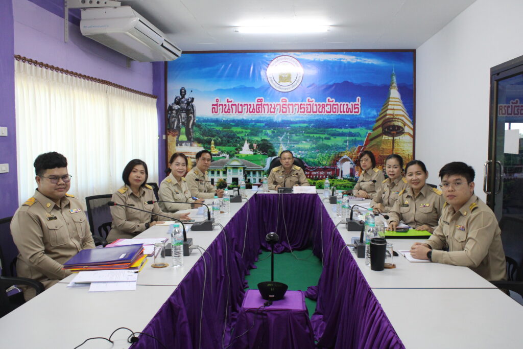 วันที่ 20 ตุลาคม 2568 เวลา 11.00 น. นายสุทิน จันทรวรเชตต์ ศึกษาธิการจังหวัดแพร่ เป็นประธานการประชุมจัดสรรงบประมาณรายจ่าย ประจำปีงบประมาณ พ.ศ. 2569 โดยมีนายพิทักษ์ กาวีวน รองศึกษาธิการจังหวัดแพร่ และผู้อำนวยการกลุ่มสำนักงานศึกษาธิการจังหวัดแพร่ เข้าร่วมประชุมฯ ณ ห้องประชุมเกี้ยวฝั้น สำนักงานศึกษาธิการจังหวัดแพร่ ตำบลป่าแมต อำเภอเมืองแพร่ จังหวัดแพร่