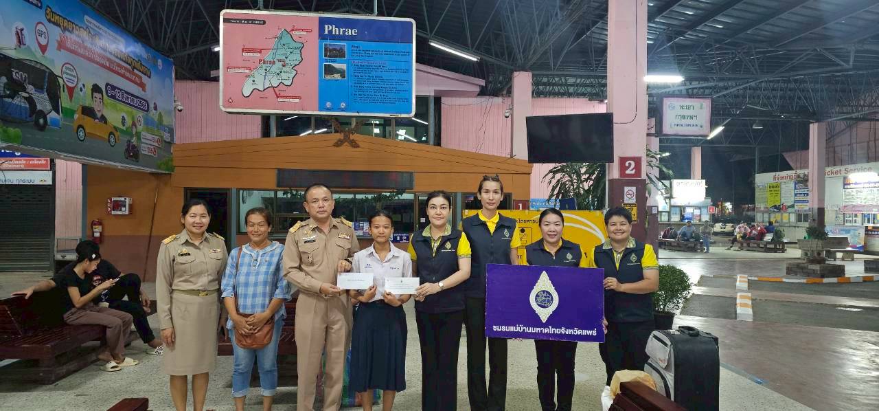 วันที่ 20 ตุลาคม 2568 เวลา 19.30 น. นายสุทิน จันทรวรเชตต์ ศึกษาธิการจังหวัดแพร่ และนางกนกวรรณ มะลิ นักวิชาการศึกษาชำนาญการ พร้อมด้วยผู้แทนชมรมแม่บ้านมหาดไทยจังหวัดแพร่ เดินทางไปส่งนางสาวณัฐกานต์ คู นักเรียนระดับชั้นมัธยมศึกษาปีที่ 6 โรงเรียนลองวิทยา เยาวชนผู้รับทุนมูลนิธิร่วมจิตต์น้อมเกล้าฯ ณ สถานีขนส่งโดยสารจังหวัดแพร่ เพื่อเดินทางไปทัศนศึกษา ทั้งนี้ นางสาวณัฐกานต์ คู ได้รับการพิจารณาคัดเลือกไปทัศนศึกษาตามโครงการส่งเสริมศิลปะและวัฒนธรรมไทย ครั้งที่ 10 ประจำปี 2568 เพื่อเฉลิมพระเกียรติ ในวโรกาสที่ สมเด็จพระกนิษฐาธิราชเจ้า กรมสมเด็จพระเทพรัตนราชสุดาฯ สยามบรมราชกุมารี ประธานที่ปรึกษามูลนิธิฯ ทรงเจริญพระชนมายุ 70 พรรษา ปี 2568 ระหว่างวันที่ 21 – 25 ตุลาคม 2568 ณ สถานที่สำคัญในกรุงเทพมหานครและปริมณฑล