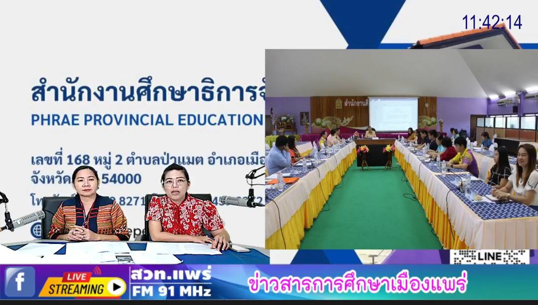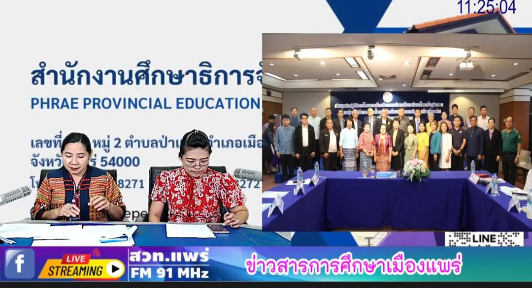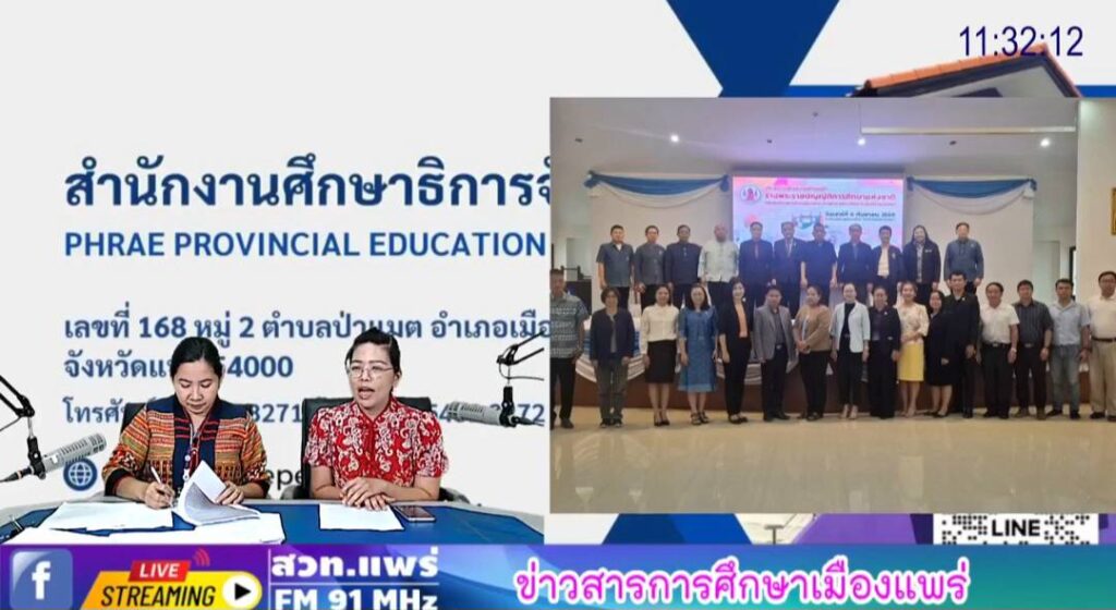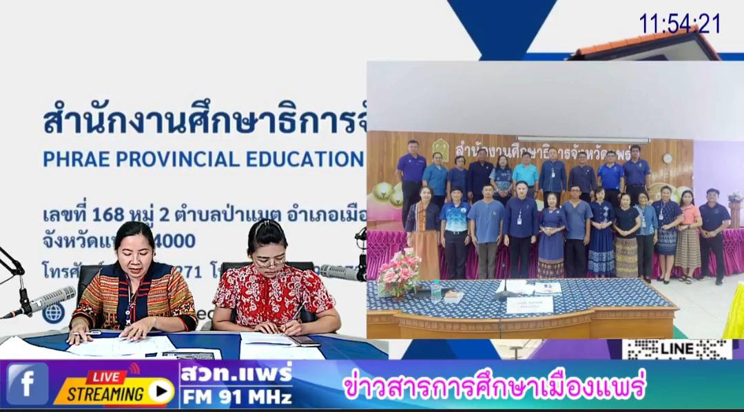 รายการร้อยเรื่องราวข่าวสารเมืองแพร่ ช่วงข่าวสารการศึกษาเมืองแพร่ ออกอากาศวันที่ 9 กันยายน 2568 โดยนางกนกวรรณ มะลิ และนางสรัญญา แสงกล้า นักวิชาการศึกษาชำนาญการ (ประชุมสมัชชาการศึกษาจังหวัดแพร่,กิจกรรมชมรมจับมือไว้แล้วไปด้วยกัน สกสค.แพร่,ประชุมเตรียมความพร้อมมหกรรมการเรียนรู้สู่ความเป็นเลิศ,ประชุมเตรียมความพร้อมค่ายทักษะ Soft Skills ยุวกาชาด,โครงการบ้านนักวิทยาศาสตร์น้อย,โครงการประกวดวาดภาพเยาวชน)