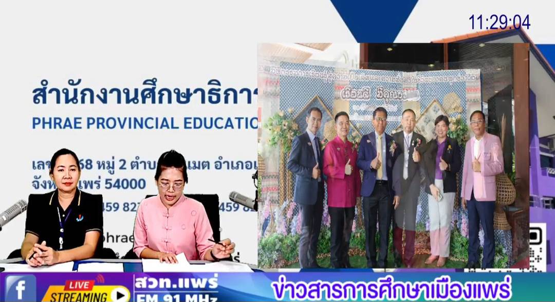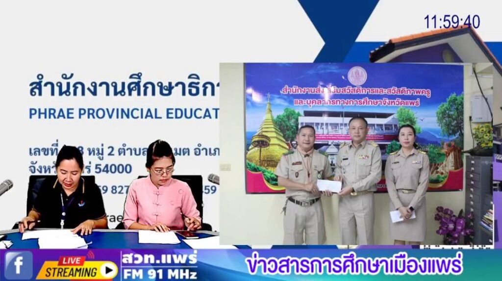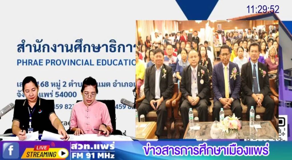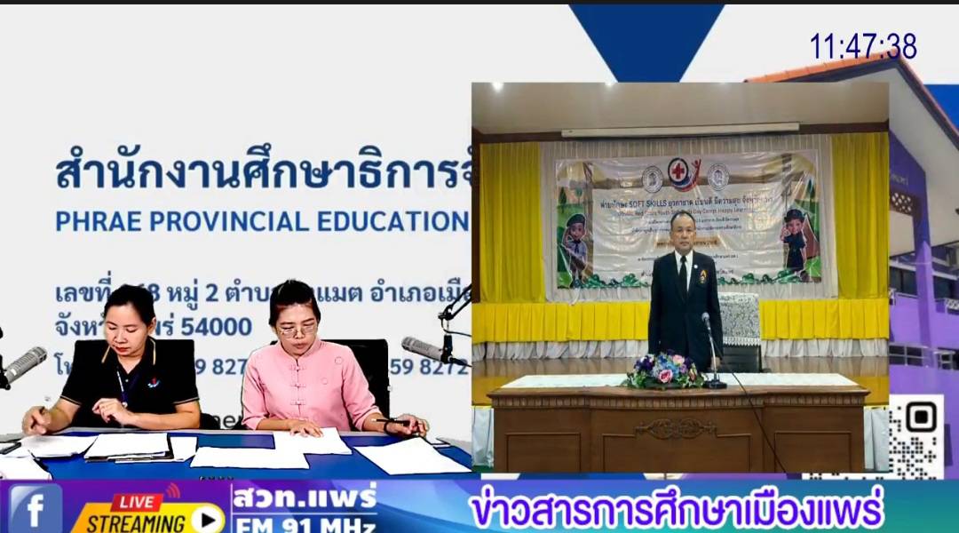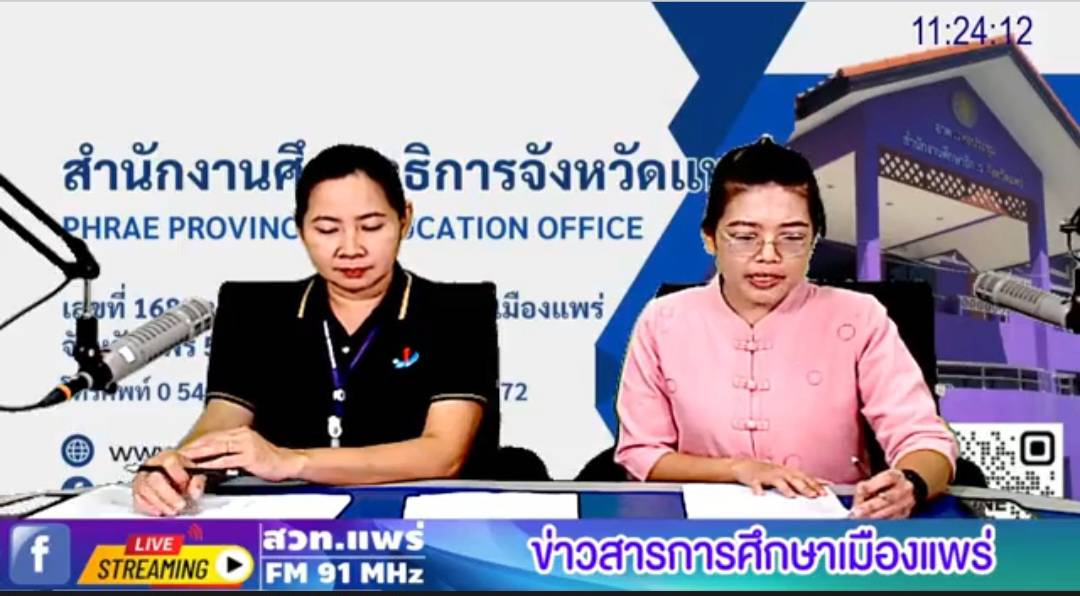 รายการร้อยเรื่องราวข่าวสารเมืองแพร่ ช่วงข่าวสารการศึกษาเมืองแพร่ ออกอากาศวันที่ 16 กันยายน 2568 โดยนางกนกวรรณ มะลิ และนางสรัญญา แสงกล้า นักวิชาการศึกษาชำนาญการ (งานมหกรรมการเรียนรู้สู่ความเป็นเลิศ,ค่ายทักษะ Soft Skills ยุวกาชาด,สกสค.แพร่ มอบทุนการศึกษาให้บุตรข้าราชการครูและบุคลากรทางการศึกษา)