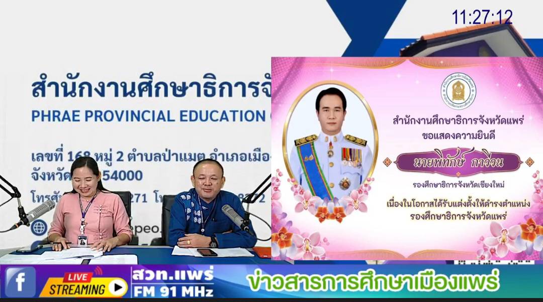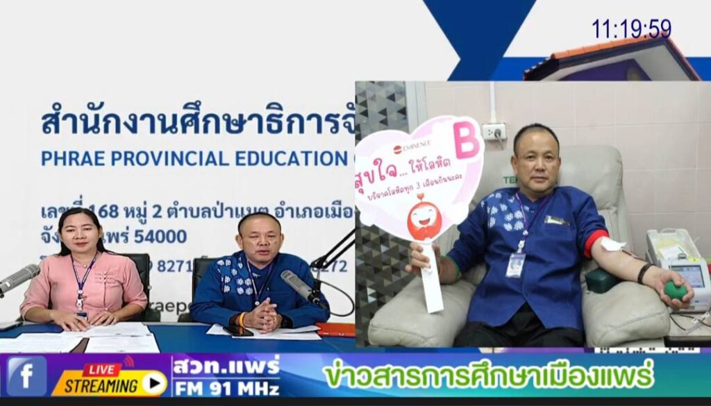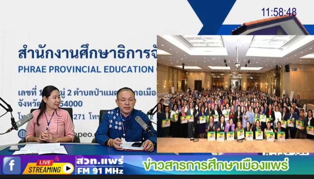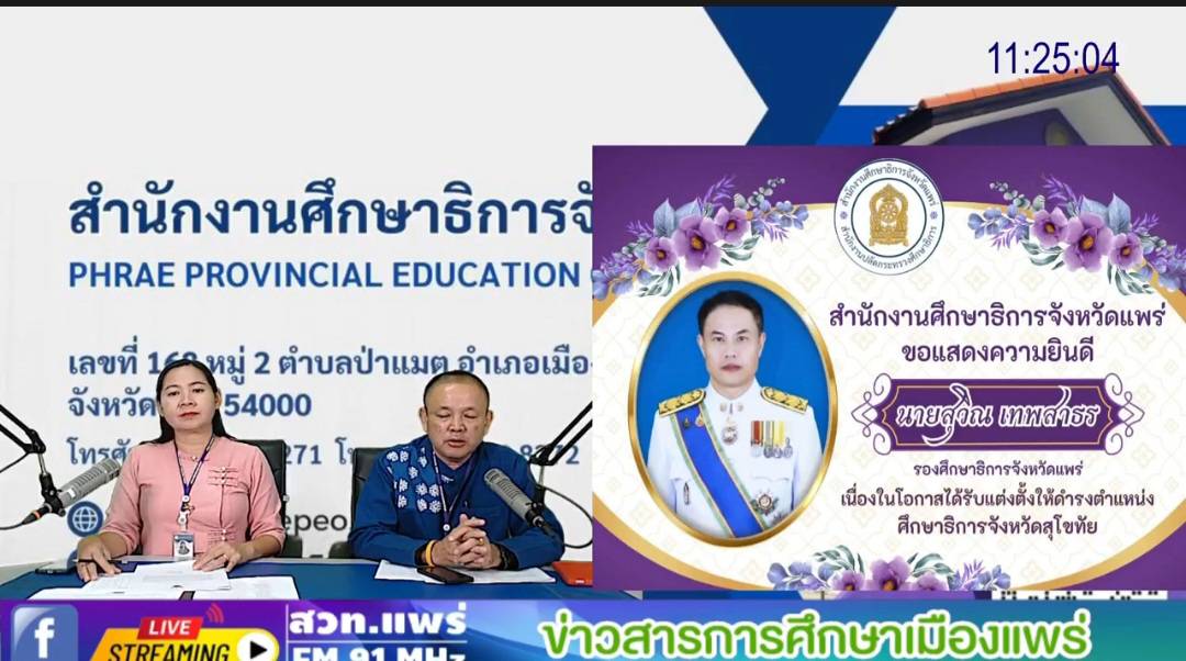 รายการร้อยเรื่องราวข่าวสารเมืองแพร่ ช่วงข่าวสารการศึกษาเมืองแพร่ ออกอากาศวันที่ 7 ตุลาคม 2568 โดยนายสุทิน จันทรวรเชตต์ ศึกษาธิการจังหวัดแพร่ และ นางกนกวรรณ มะลิ นักวิชาการศึกษาชำนาญการ (บริจาคโลหิต,แสดงความยินดี ศธจ.สุโขทัย,รอง ศธจ.แพร่,รางวัลพระพฤหัสบดี,ประชุมคณะอนุกรรมาธิการ,ประชุมเชิงปฎิบัติการผู้นำเครือข่าย)