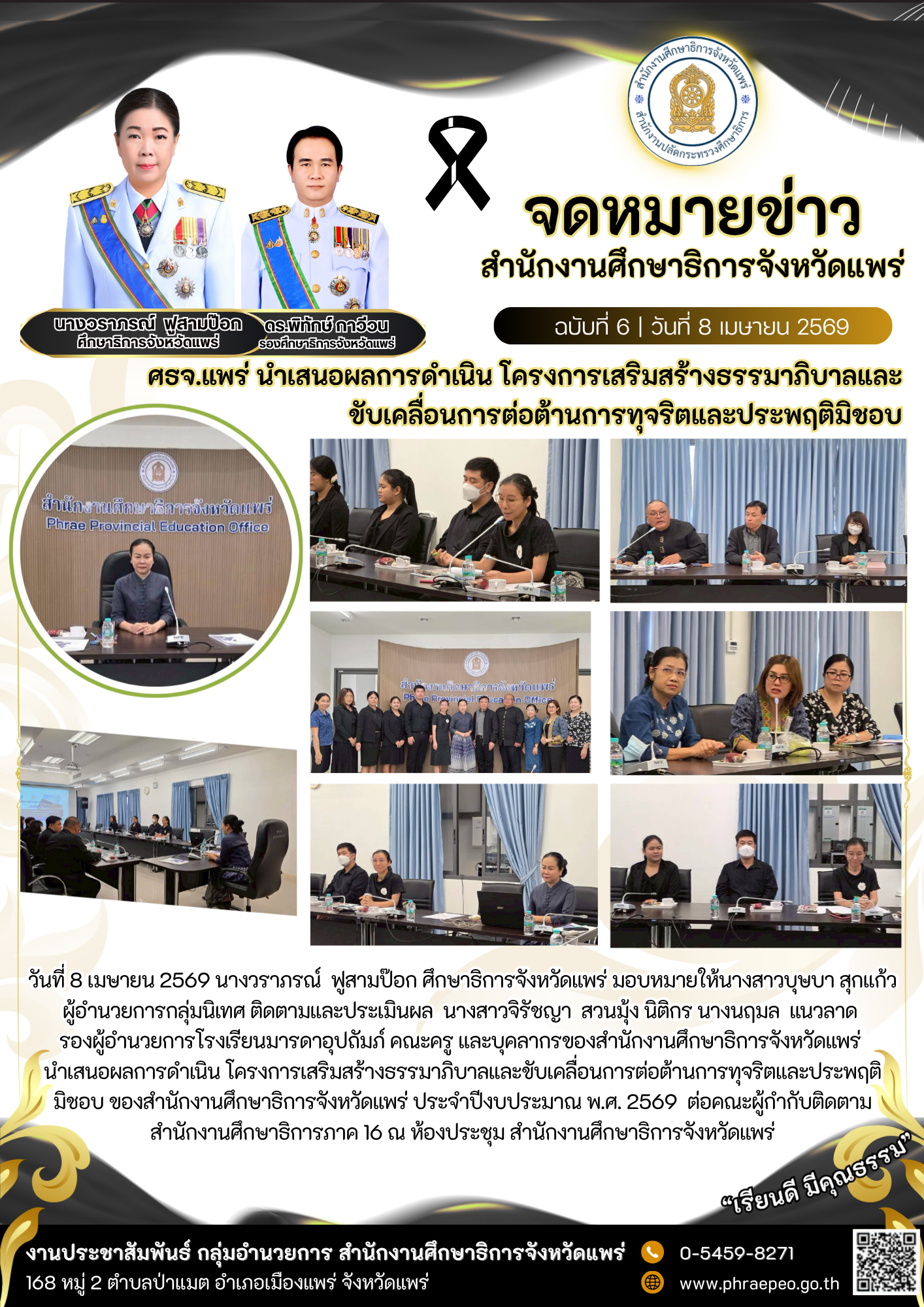 มิชอบ ของสำนักงานศึกษาธิการจังหวัดแพร่ ประจำปีงบประมาณ พ.ศ. 2569 ต่อคณะผู้กำกับติดตามสำนักงานศึกษาธิการภาค 16 ณ ห้องประชุม สำนักงานศึกษาธิการจังหวัดแพร่