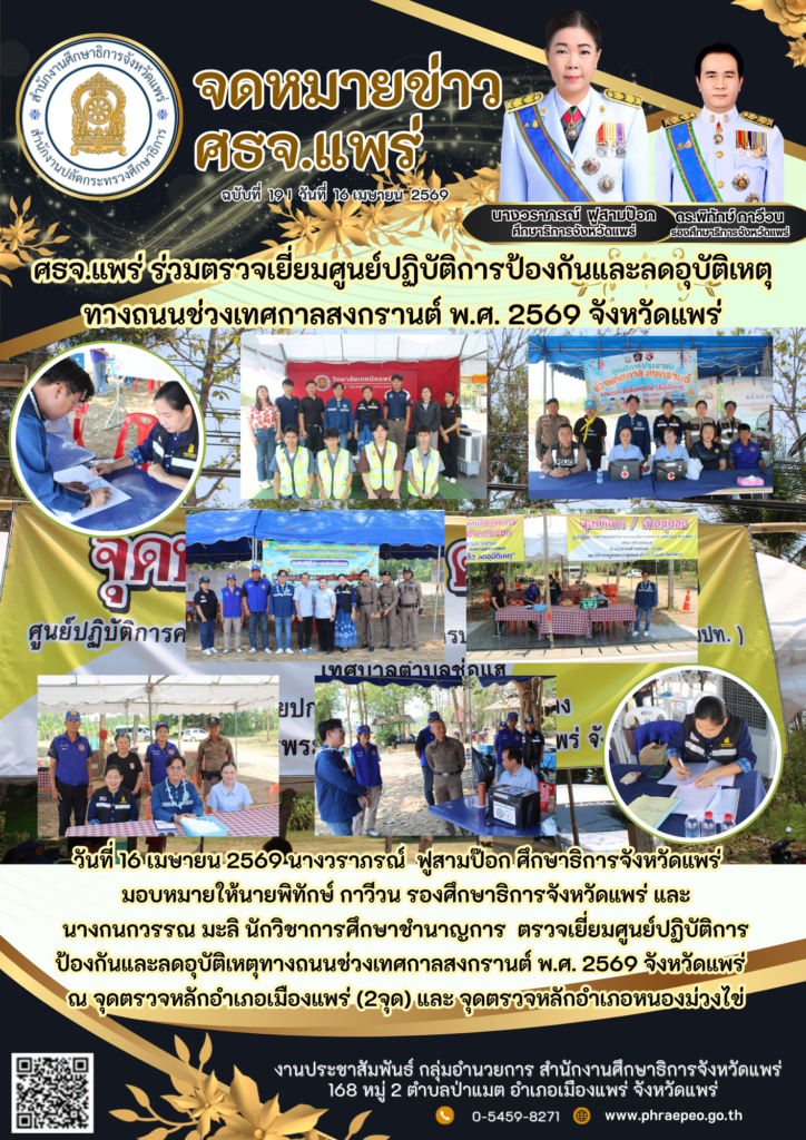 ป้องกันและลดอุบัติเหตุทางถนนช่วงเทศกาลสงกรานต์ พ.ศ. 2569 จังหวัดแพร่