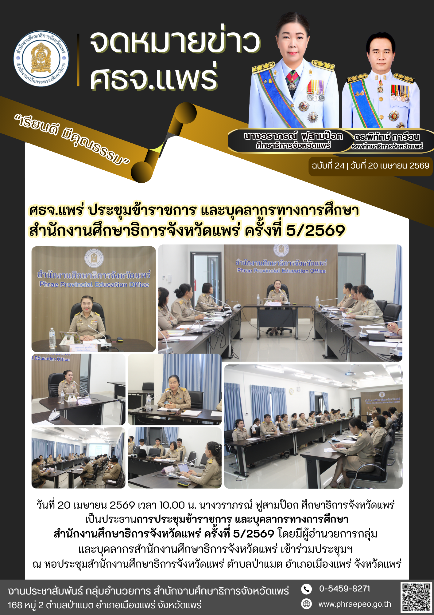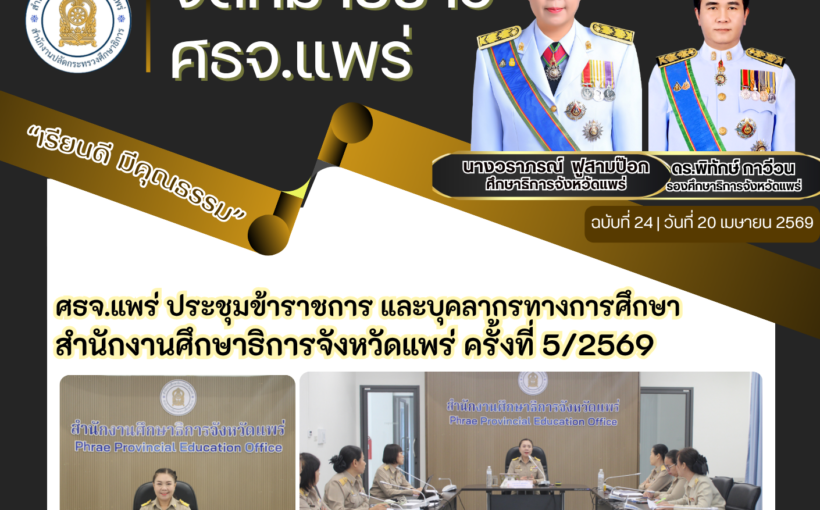 วันที่ 20 เมษายน 2569 เวลา 10.00 น. นางวราภรณ์ ฟูสามป๊อก ศึกษาธิการจังหวัดแพร่